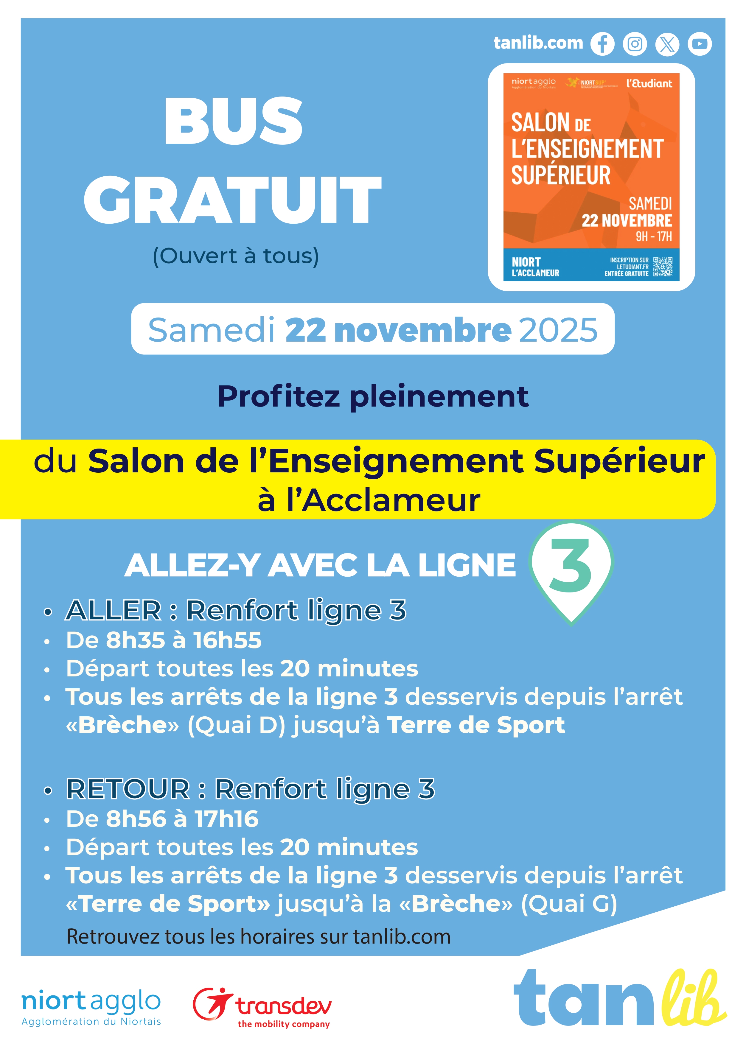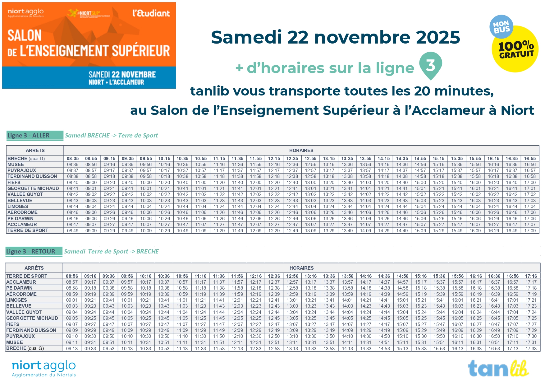 Le jour du salon, le trafic de bus sera renforcé sur la ligne 3 avec un départ toutes les 20mn à la Brèche et l’Acclameur. Le bus sera gratuit sur le trajet "La brèche" / "Terre de sport".
